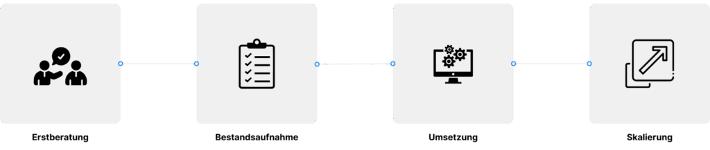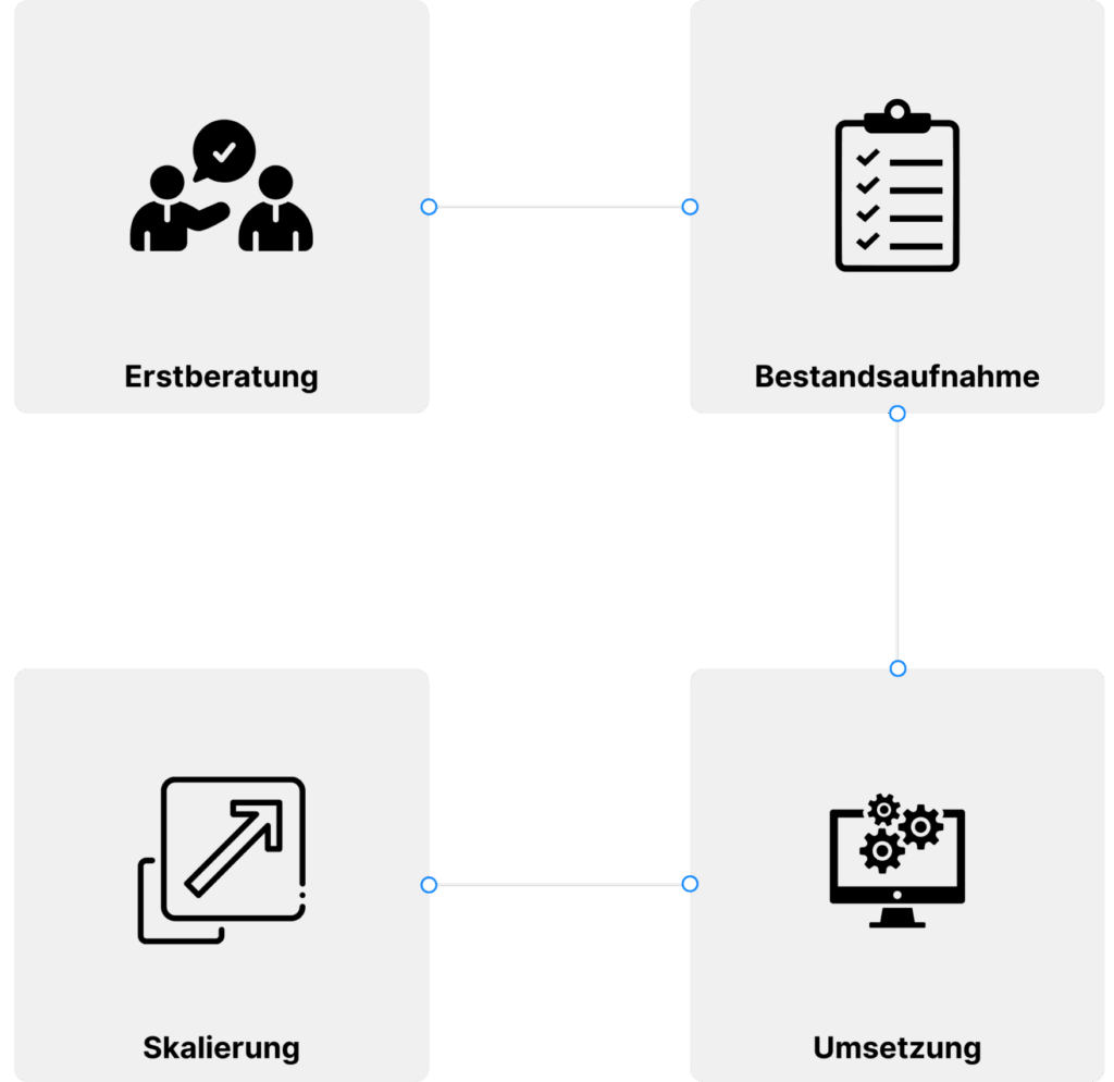 In einem unverbindlichen Analysegespräch betrachten wir gemeinsam Ihre aktuelle Situation. Mithilfe unserer strukturierten Roadmap zeigen wir Ihnen exakt, wo Sie gerade stehen, identifizieren bestehende Schwachstellen und geben klare Empfehlungen, welche Themen Sie als Nächstes angehen sollten.